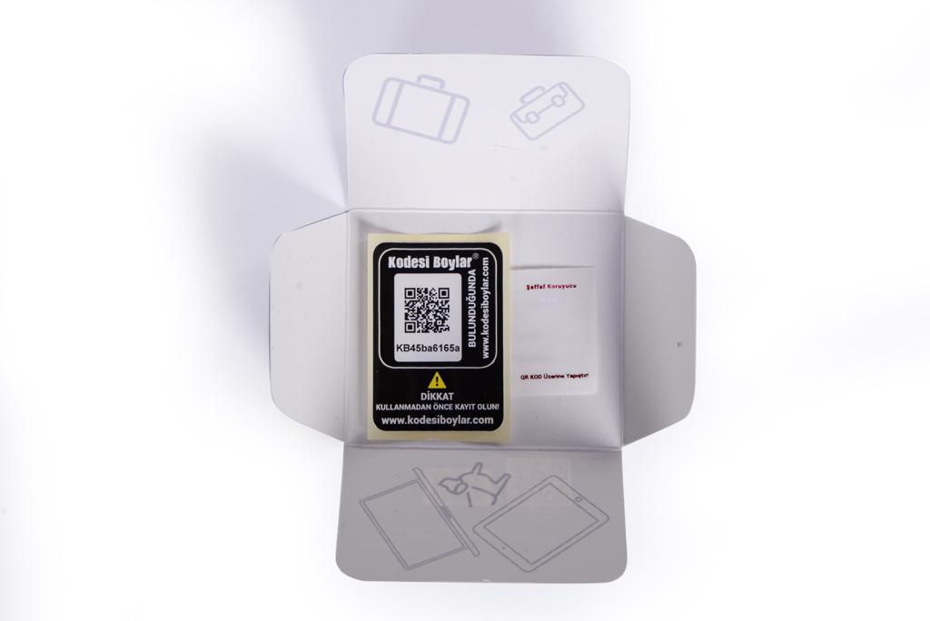Aseton, kolonya vb. etkilerden zarar görmemesi için zarftaki şeffaf etiket karekod üzerine yapıştırılmalıdır!